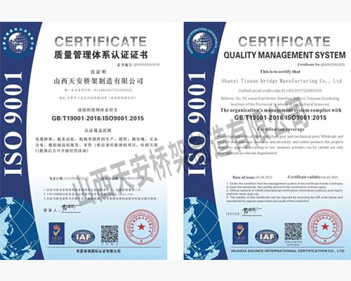山西天安橋架制造有限公司是一家生產(chǎn)電纜橋架、母線槽的大型廠家,主要生產(chǎn):槽式橋架、托盤式橋架、梯級式橋架、大跨距橋架、母線槽有空氣型、密集型、耐火型、鋁合金等以及通風(fēng)管、可根據(jù)客戶要求定制各種型號各種規(guī)格,表面處理有熱鍍鋅、防火噴塑、防火漆、熱鍍鋅等,產(chǎn)品廣泛應(yīng)用于石油、化工、治金、電力、紡織、通訊、高層建筑等各個(gè)領(lǐng)域。產(chǎn)品具有外形美觀,耐腐蝕性強(qiáng),安裝靈活方便,品種齊全等特點(diǎn)。